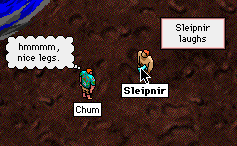I gotta tell ya, Sleip -- this "knight" stuff, you're new to it, right? I mean, you seem a nice enough guy and all, and I understand you're not a bad fighter, but you seem a bit quick on the draw, fast to take offense, and wont to point fingers. Not really very "knightly" behaviour, now, is it? (Dare I make the same accusation caused by one Urgelt, and place before our friend a challenge to prove himself worthy of the title? Hmmm... No, methinks we'll wait to see if he comes to fair play, as one can hardly blame the small-minded for lashing out during times of distress.)
