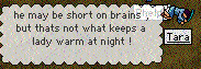 Babe (and Tove) were very coy about some big secret for quite a while before they finally spilled the beans. Turns out that Cutlas has got the hots for Baba and is courting her formally with flowers. For some reason this made Tove and Baba both very nervous. I was just surprised that a Pogue person was interested in anything except rank statistics. (With the exception of Althea, of course). However that may be, Baba finally got up the nerve to tell Sleipy about this, but he's not bothered in the slightest of course. He's learned his lesson well. Finally. But I hope Cutlas is prepared for some vitriolic verbal battles. And I hope he doesn't get ooc mad at me.