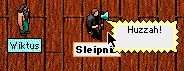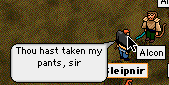 | Silly old Sleipy sold his greatsword. I couldn't believe it, the pathetic twit. He got it into his head that Astrid was questioning his honour, in saying that she thought clan funds should not be used for such purchases. So, nothing would do but he return the money immediately, and that meant selling the sword. Of course, to get a quick sale he put it out for sale for only what he needed to pay the clan back. Only 6 bloody thousand. Fuck. Sale was quick, as you can imagine. And now Sleipy is back to zero in the bank, having given his entire life's savings to Alcon, in the shape of a brand spanking new greatsword. And Sleipy is back to not being able to hit tree giants, or wyrms, or Noths, or Noids, or anything really. Well, it was fun while it lasted.