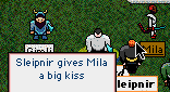| Well, at any rate, back to the Malkor story. Where was I....? Oh yes, Tenebrion. Let me cut the story short 'cause I can't be bothered typing. So Sleipy tries to collect the bounty on Malkor's corpse. No go. It's just too easy for Malkor to escape, since there are many exiles willing to help the cheating little spriggin. And he only has to sleep to get off the chain. In the meantime, wee Malkor is the centre of attention, and loving it.