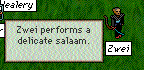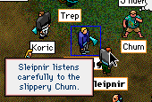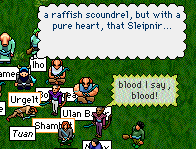 Poor Sleipy has been done by Chum once again. Sleipy just can't keep up with all these smart minds, and gets shafted every time. Started when Chum conned Baba into getting into the jail with a bunch of nasties, and you can read all about that in her diary (piccies and all). So anyway, Sleipy confronted Chum in the Town Square and accused him of being nasty to Baba etc etc. Chum of course denies it all, slippery bugger that he is. In fact, Chum agreed that he would submit to appropriate punishment if, after investigation, Sleipy decided that he had behaved improperly. Made him a little nervous at the thought. Ashe was delightful as always. I really love that wee witch, and her poo-slinging friends.
