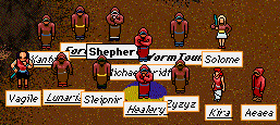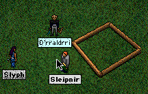 The Knight made himself as annoying as possible during the resurrection of Bowels but was unfortunately prevented from chopping up Naamah and Lilit because they actually helped this time. He was looking forward to seeing a dead and mangled Clan Lord so that he could scream bloody murder and attack the nasty witches. But instead he got a live and kicking Bowels. Ah well. And poor Kojiro. Asked to play along, and then roundly cursed by all. Ho Ho Ho. I must say (here, in public, now, in front of all) that I actually rather like Kojiro. I think he does a good job of being a nasty character. Slips up every so often but usually does it in a non-snerty way. That is so *very* much harder to do than just being a pathetic pompous Knight.