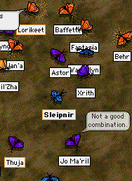 Very few CL players have the ability to affect my life in any meaningful way. If I interact nicely with them, fine; if not, well, no big deal. It is certainly true that, of those characters who know him, probably a good majority view Sleipy as an annoying character. And it's undeniable that many of the clickers of those characters believe me to be equally annoying in the same fashion as Sleipy. This is a source of amusement to me. I enjoy winding up the bad karmas, I enjoy being the butt of outraged SS flurries if I dare to spout soppy lovey-dovey stuff for Baba. The fact is, I believe, that the majority of players are too young, or too serious, to understand Sleipy for the satire that he really is. This is, of course, not to say that I'm *not* annoying. I am. In many ways. Just in different ways from Sleipy. Or so I like to think.