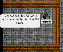 Many exiles had a surprising (to me) reaction, thinking it was all just an OOC jab at the PM. Well this isn't true, as I've got better things to do than that. It is, of course, because Cutlas is in the PM. If Cutlas was in the Hearts of Tan, Sleipy would be trying to join the Tannies. I'm surprised how few people actually realised that. Ah well. The trouble is that PM is such a perfect target for satire, being so serious about the whole thing. And when they become a target for satire (because of their own silly actions) they get all pissy, which just makes it even funnier. Not to mention that so many exiles detest the PM, and just love to see me making fun of them.