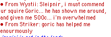 But making fun of someone is not the same as attacking them, as people really should realise. I have spent my entire gaming career making fun of Sleipy for starters, and one could hardly call that malicious. It's a little complicated by the fact that I actually don't particularly like most of the PM members, either OOC or IC. Quite frankly, Sleipy has had nothing from Blitz and Devil, Klur and Baff and Baffette, or Arocet, but abuse that borders on OOC, if not downright OOC at times. They are players that have so little sense of humour they seem to be incapable of dealing with someone like Sleipy, who is essentially poking fun most of the time (mostly at himself of course). And so they abuse him. But life isn't quite so simple. I have grown to like Cutlas, and appreciate his sense of humour. SWC Althea I like to consider a friend, if she will have me. Polychrome's posts to the NG were impressive. And Wisher and Band have always treated Sleipy with respect. So I can hardly dismiss the entire PM as a bunch of wankers.