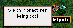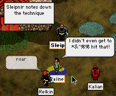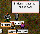 A distinct lack of patience emerges in Sleipy. Now I'm the first to admit that I'm an arrogant SOB, with a quick temper and a foul tongue. You all know that, so do I. But in RL I usually rein it in pretty well. If some teenager came up to me while playing and made stupid remarks, or criticised me, or something like that, I would respond gently. Really, I would. After all, I've been in the business a long time, I know how it works, and the young kid doesn't. That entails a certain responsibility to educate younger musicians in an understanding way, not to just slap them down without reason. (Of course, sometimes there is a reason. When I was younger and much less experienced, but just as arrogant, I was very often told "JAMES, JUST SHUT THE FUCK UP". I got that a *lot*. It does tend to knock out some of the arrogance. Not much in my case, of course).
