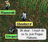 Sleipy is now seeking to join the Pogue Mahones. It's his last chance to get his Lady back again: he has to be a strong brave fighter now to catch her attention and win her love. He needs testimonials from as many exiles as possible, testifying to his extreme fighting skill, his level head, his high intelligence, his ability to work as part of a team, and his very nice nature. Please send all letters to Blitz, or talk to him in Puddleby. Or send them to Sleipy (sleipnir@red-quill.com), and I shall forward them to Blitz.