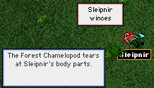 | To the right we see how Sleipy died. The beasties just went on and on and on and on and on....... there was hardly a beastie-free inch of ground to stand on. The update fixed him up I'm pleased to say. | ||||||||
