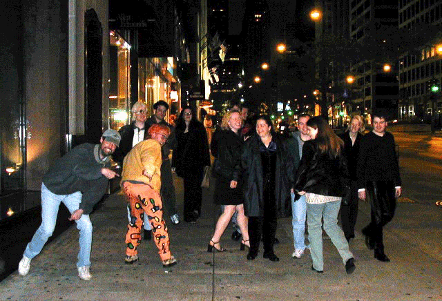 May 30th 2002The Chicago piccies are up here. A million thanks to Mike for doing such a wonderful photography job. I hate photographs of myself. Do I *really* look like such a dork? No, don't answer that. DON'T answer that. Yeah, up yours, mate. |